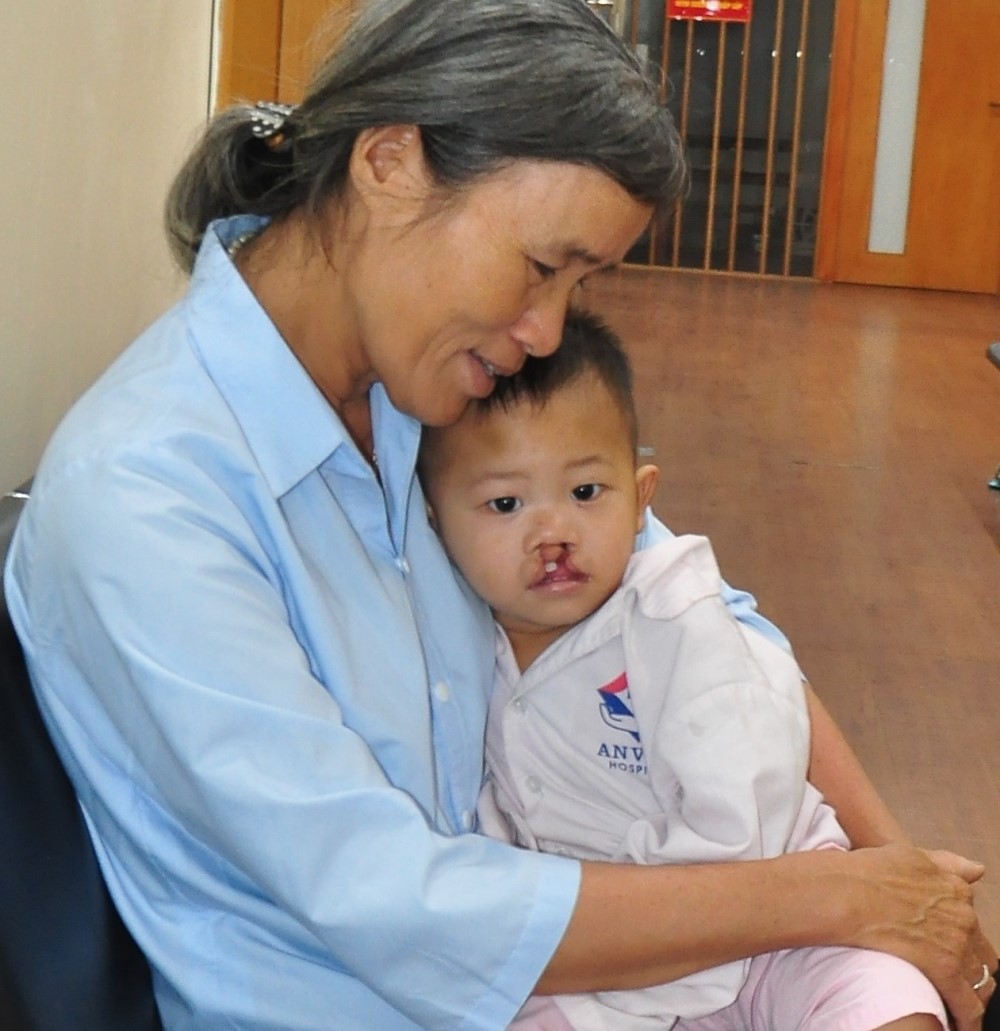 Our patient Khahn lives in an orphanage, 110 km from Hanoi. His parents are not known to the staff at the orphanage. The fact that Khahn was born with a large cleft lip could unfortunately be one of the reasons why he was abandoned by his biological parents, who often do not know that treatment of clefts is available for free from our Vietnamese partners. Now Khahn's foster mother Hien lovingly takes care of the little one. She is very worried: would Khahn ever have an operation or, in the worst case, would he have to suffer from the cleft for his entire life, with the problems with simple everyday things like eating and speaking that means?